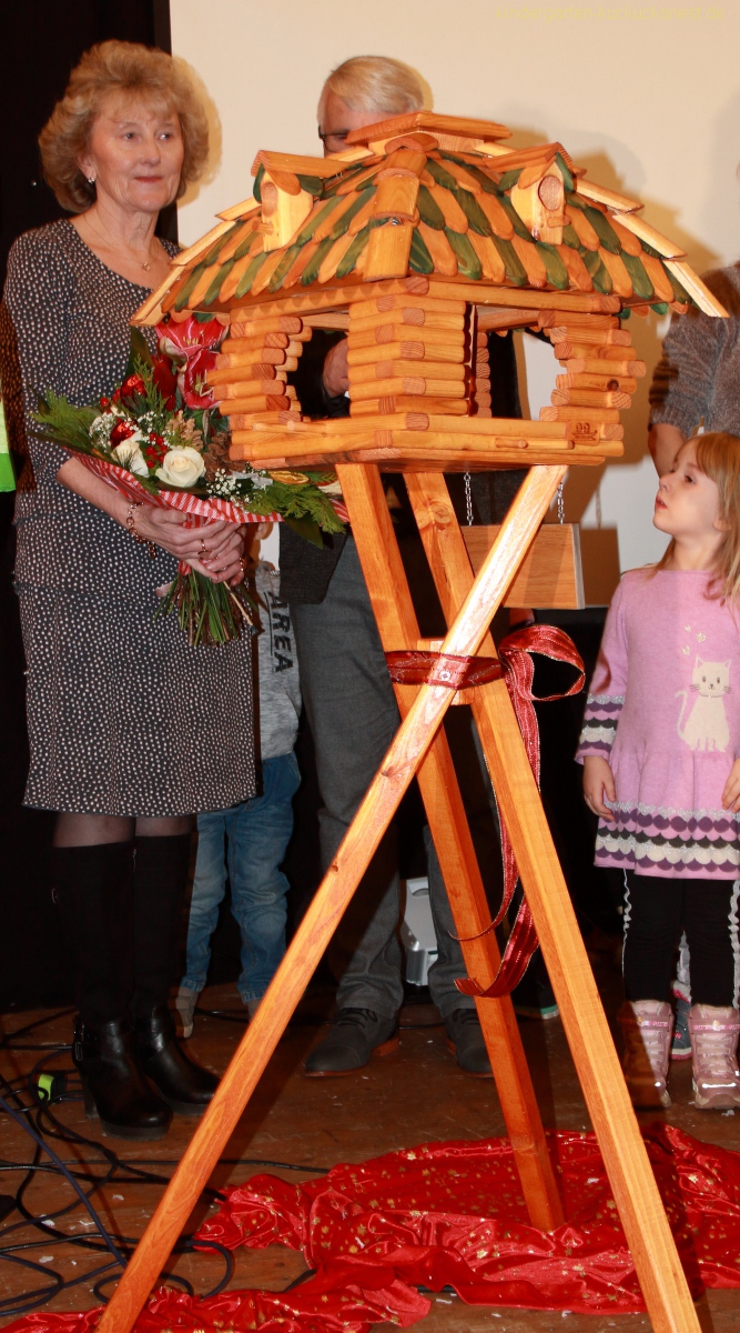 Bei der ergreifenden Rede vom Vorstand des Fördervereins und der Übergabe des Abschiedsgeschenks, ein großes Vogelhaus, flossen reichlich Tränen im ganzen Saal. Ein sehr emotionaler Moment für alle Anwesenden.