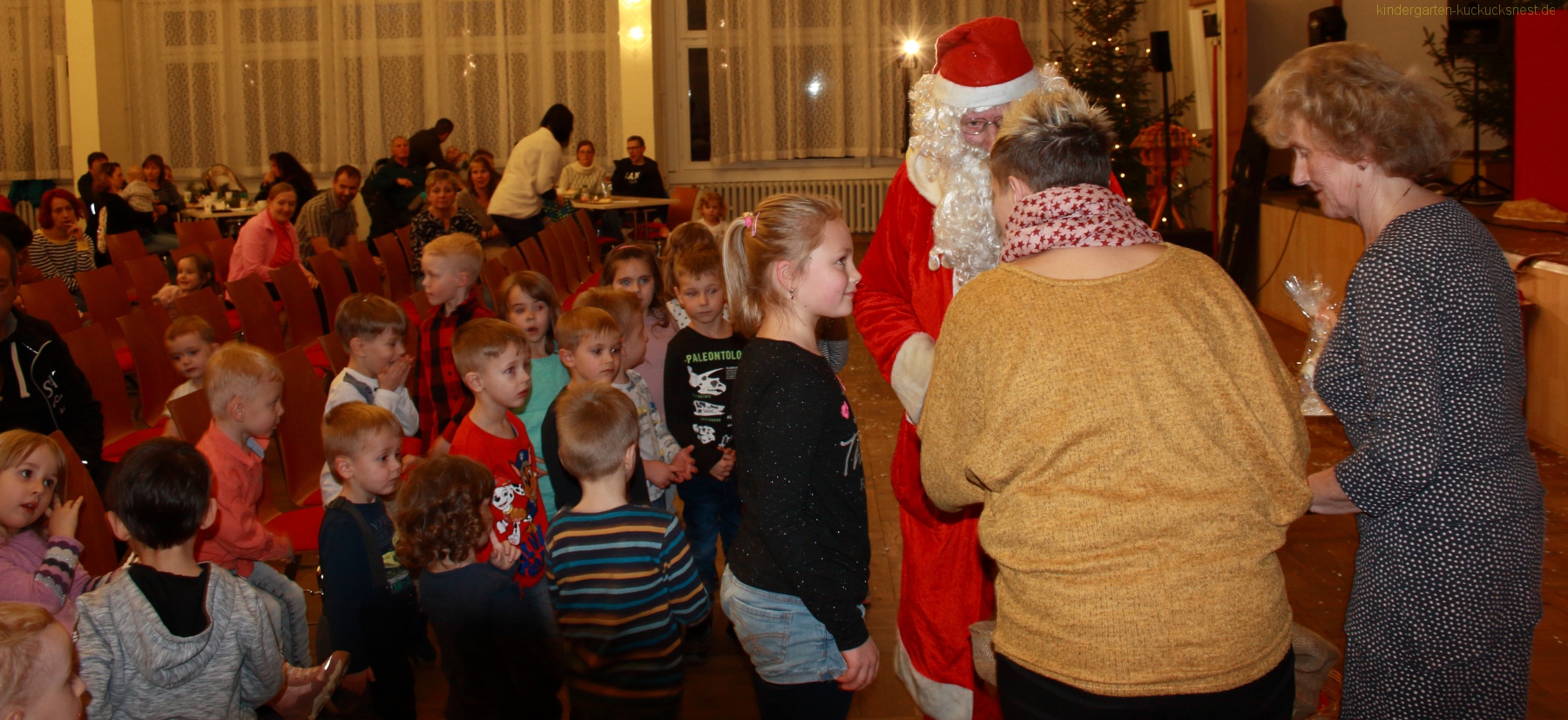 Der Kindergarten lud alle Kinder mit ihren Familien und Freunden zur Weihnachtsfeier in den Rennsteigsaal ein.